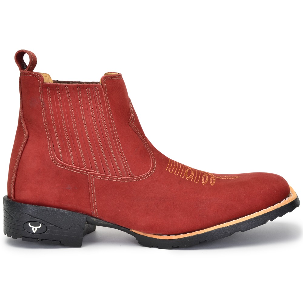 Bota Country Masculina Texana Couro Nobuck Bico Quadrado Cano Curto